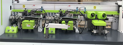 主要功能:預(yù)銑-六輪壓貼-涂膠貼邊1-烤燈1-涂膠貼邊2-烤燈2-雙導(dǎo)軌齊頭-精修1-精修2-跟蹤修邊-刮邊1-刮邊2-平刮-拋光1-拋光2。