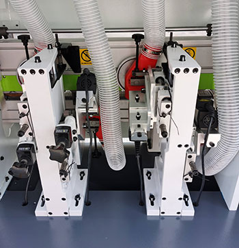 切斷板材兩頭的多余封邊帶(氣缸帶2個調(diào)壓閥1個泄壓閥)氣壓更穩(wěn)定,齊頭齊尾更穩(wěn)定 |