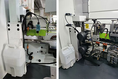 6輪壓貼貼合比4輪更精密,膠線輕微不跑帶,貼合牢靠,厚薄木皮均可輕松走帶,氣缸控制開關(guān)膠門,膠量穩(wěn)定,厚薄均勻。 |